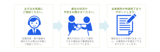一定の要件を満たした設備投資には、税金軽減などの優遇税制が用意されています。まずは当事務所へご相談ください。